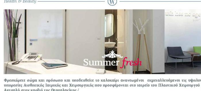 Φρεσκάρετε σώμα και πρόσωπο και υποδεχθείτε το καλοκαίρι ανανεωμένοι εκμεταλλευόμενοι τις υψηλού επιπέδου υπηρεσίες Αισθητικής Ιατρικής και Χειρουργικής που προσφέρονται στο ιατρείο του Πλαστικού Χειρουργού Ευάγγελου Ακτσαλή στην καρδιά της Θεσσαλονίκης.