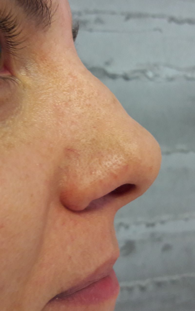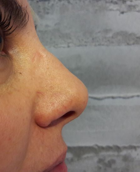 Υπάρχουν, όμως, και μύτες οι οποίες δεν χρήζουν μείζωνες παρεμβάσεις: ένας μικρός ήβος (”καμπούρα”), μια μικρή πτώση της κορυφής (βλ. φώτο) ή μια ήπια ασυμμετρία μπορούν να αντιμετωπισθούν συντηρητικά, αποφεύγοντας, έτσι, το χειρουργείο και ό,τι αυτό συνεπάγεται. Σ’ Αυτές τις περιπτώσεις έχει ένδειξη να διενεργείται η μη- επεμβατική ρινοπλαστική.